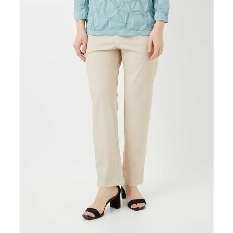 穿き心地抜群のハイテンションパンツ。夏場にうれしい機能性素材での登場!ももから裾にかけてのシルエットは、すっきりとしたストレートライン。ウエストは総ゴムの仕様で穿き上げタイプです。後身頃にパッチポケット付きのデザイン。UV加工や接着冷感など暑い時期には嬉しい多機能素材です。ワンピースやチュニック丈のアイテムなどのレイヤード合わせでも ごわつきなどなくお召しいただけます。また、デイリーアイテムとして幅広くお召いただけます。汗ばむ季節にはご自宅でのケアが可能なアイテムであるのも嬉しいポイントです。