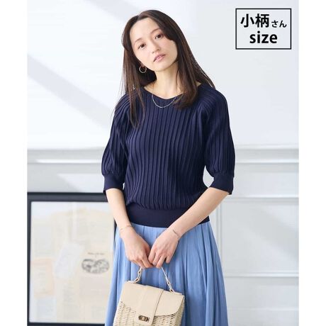 シンプルで着回し力は高く、総プリーツ見えで着映えも叶う新定番の七分袖の夏まで着られるニットです。
