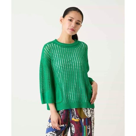 ざっくりとしたメッシュ編みがニュアンス感溢れるリラクシーニットプルオーバー