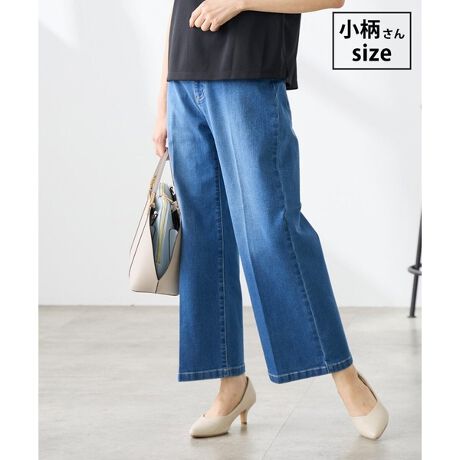 定番人気のデニムワイドパンツは、腰回りがもたつかないすっきりとしたシルエットが人気です。