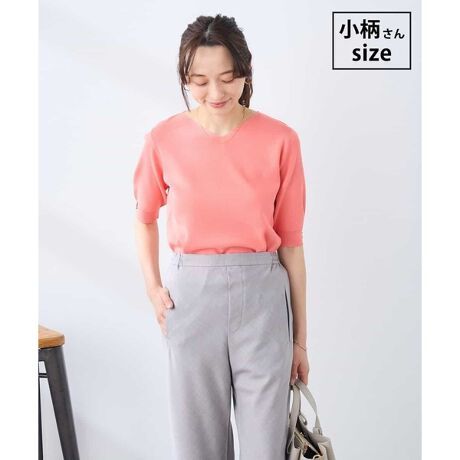 ・袖ディテールハーフスリーブVネックニット:K3FGD79039
