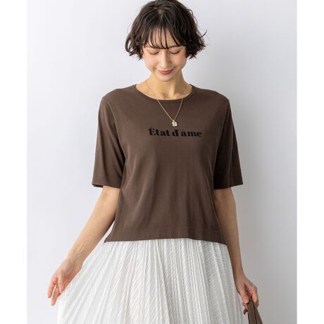 フロントに「etat d'ame(エタダーム)」のロゴをあしらった5分袖ニットプルオーバーです。「落ち着いた心」を意味するフランス語をインターシャ編みで表現し、プリントTシャツとは一味違う高級感のある仕上がりになっています。程よい透け感のある素材を使用することで、カジュアルになりすぎず女性らしい上品な印象を演出します。コンパクトな見た目ながらも体のラインを拾いすぎない絶妙なサイズ感にこだわりました。一枚で着るのはもちろん、ジャケットやカーディガンのインナーとしてロゴを覗かせるスタイリングもおすすめです。デニムと合わせた大人のカジュアルスタイルから、フレアスカートと合わせたフェミニンな装いまで幅広く活躍します。カラーは、清涼感のあるホワイト(#001)、落ち着いたトーンのブラウン(#030)、爽やかなアクセントになるスカイブルー(#072)、シックで合わせやすいネイビー(#075)の4色展開です。