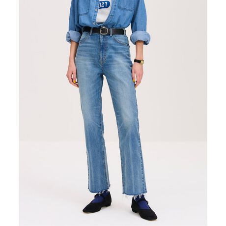 ほどよいヴィンテージ感に、カットオフディテールを効かせたハイウエストデニム。