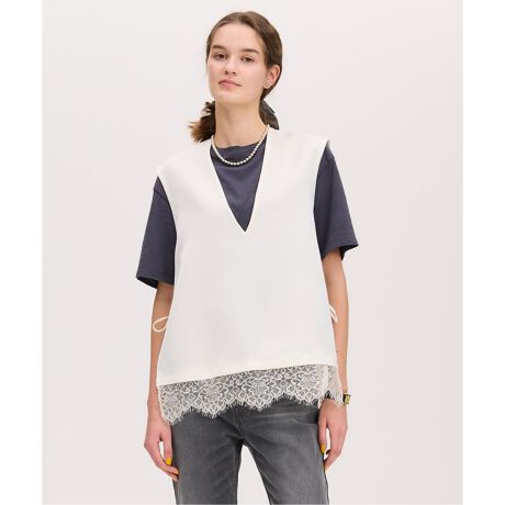 裾から覗く繊細なレースが、さりげなく女性らしさをプラス。