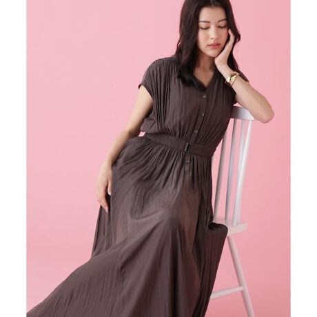 割繊のエアリー素材で仕立てたワンピース。繊細なギャザードレープが奥行きのある表情を生み出し、裾に向かって緩やかに広がる切り替えにマチを施すことで、より美しいフレアシルエットを演出します。動くたびにふんわりと揺れ、軽やかで柔らかな雰囲気を纏える一着です。ウエストはシャーリングベルトでマークし、エアリーなボリュームの中にも程よいメリハリをプラス。女性らしいしなやかさを引き立てます。