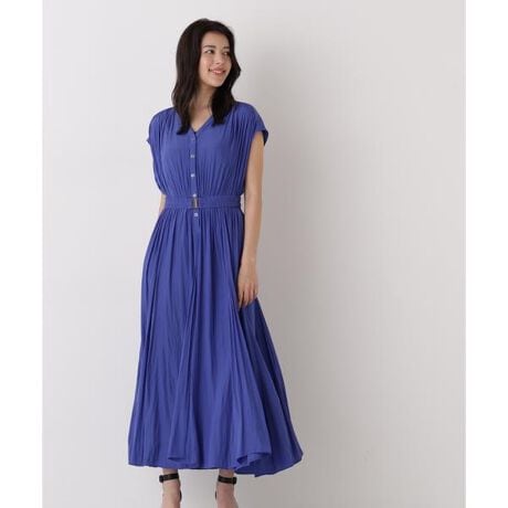 割繊のエアリー素材で仕立てたワンピース。繊細なギャザードレープが奥行きのある表情を生み出し、裾に向かって緩やかに広がる切り替えにマチを施すことで、より美しいフレアシルエットを演出します。動くたびにふんわりと揺れ、軽やかで柔らかな雰囲気を纏える一着です。ウエストはシャーリングベルトでマークし、エアリーなボリュームの中にも程よいメリハリをプラス。女性らしいしなやかさを引き立てます。