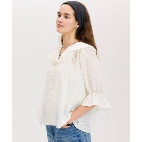 涼しげなシアーチェック素材でお作りした、軽やかなブラウス。