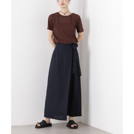 嬉しいUVカット/接触冷感機能が付いた、リネンブレンドシリーズのラップ風スカート。オンオフ問わずデイリーに使えて、同シリーズのフレンチスリーブシャツとセットアップコーデもおすすめです。