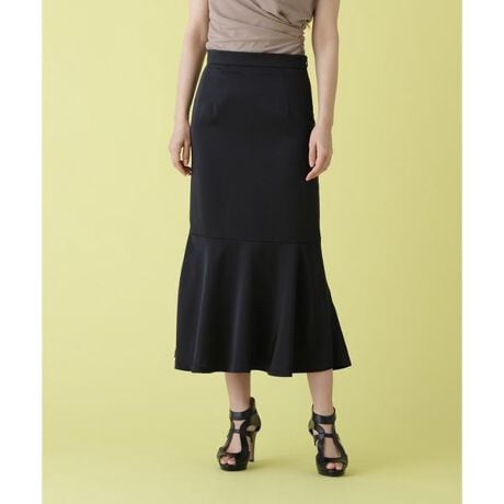 しなやかなサテンストレッチ素材で仕立てた、マーメイドシルエットのスカート。腰まわりから切り替え位置まではすっきりと、そこから裾にかけて緩やかに広がるフレアーが、歩くたびに美しい揺れ感を演出します。上品な光沢感のある素材が、女性らしいラインをより一層引き立て、コーディネートにエレガントな印象をプラス。ミディー丈にすることで、落ち着きと華やかさのバランスが取れた一枚に仕上げました。シーンを選ばず活躍する、女性らしさを大切にしたスカートです。