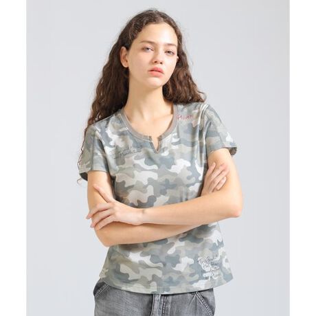 ・顔周りがスッキリ見えるキーネックのTシャツ