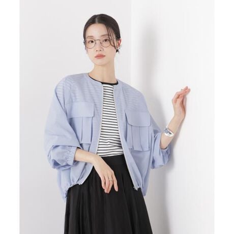 春から初夏にかけてのスタイリングを羽織るだけでアップデートしてくれるシアーブルゾン。やさしい光沢感が上品な印象を演出し、程よい透け感で軽やかさと着やすさを両立。軽やかな素材感で春先の防寒対策としてはもちろん、シアートップス感覚でも着用いただける一枚です。