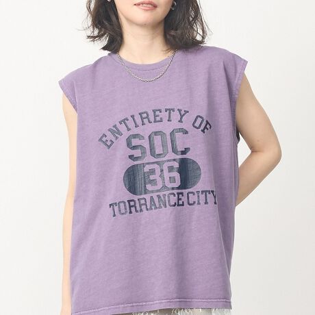 古着のような味のあるピグメント加工を施した、ノースリーブロゴTシャツ。