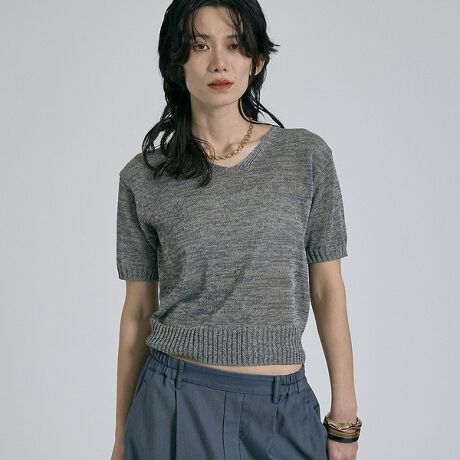 カラーポリリネンVネックニット【予約】