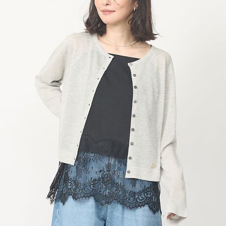 前を閉じてプルオーバー風に着ることで、すっきりとした品のある印象に。