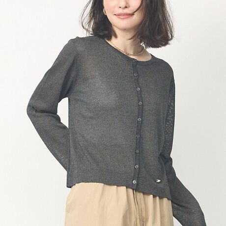 前を閉じてプルオーバー風に着ることで、すっきりとした品のある印象に。