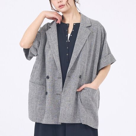 麻調の素材を使用し、裏地もなくしたリラックス感ある半袖ジャケット。