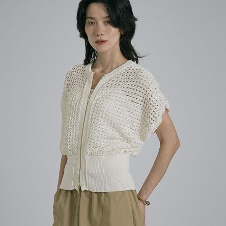 ZIPを少し開けてインナーを見せることで、軽やかなレイヤードが楽しめます。