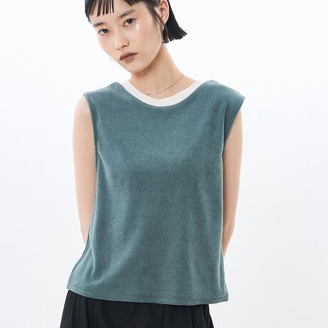 さらりと心地いいパイルと配色リブで、シンプルなのに印象が残る一枚。クロップド丈が今季のワイドボトムに好相性で、着るだけでバランスアップ。