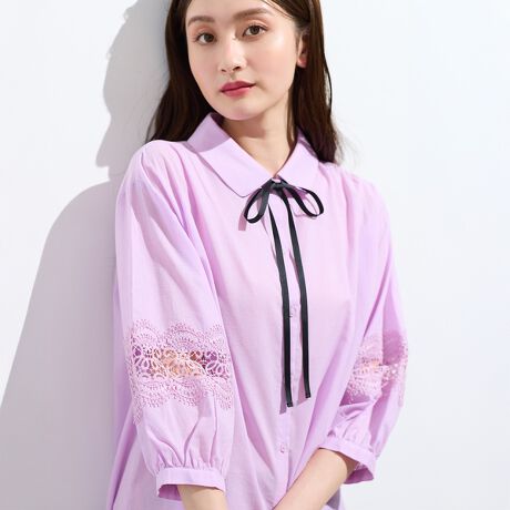 ・袖部分には繊細なレース切替を施し、さりげない華やかさをプラス
