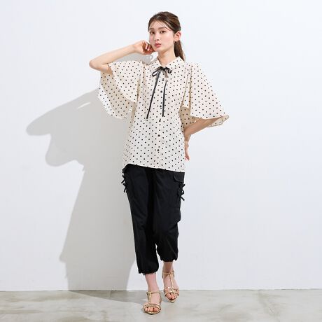 ・きちんと感のあるシャツデザインで、上品な印象のドットブラウス