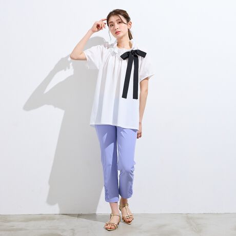 【接触冷感】ギャザーリボンブラウス