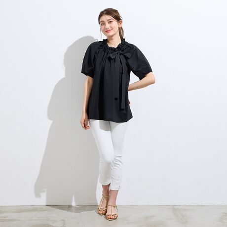 【接触冷感】ギャザーリボンブラウス