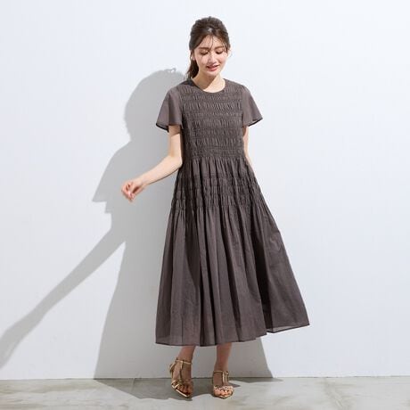 ・可憐な存在感を放つ、シャーリングデザインのマキシ丈ワンピース