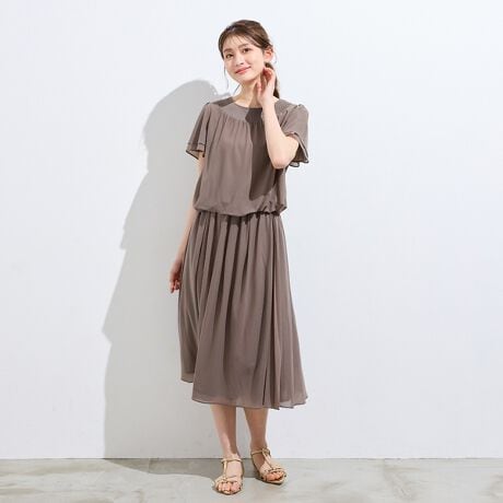 ・同素材を使用したブラウスとセットアップでワンピース風に着るのもおすすめ