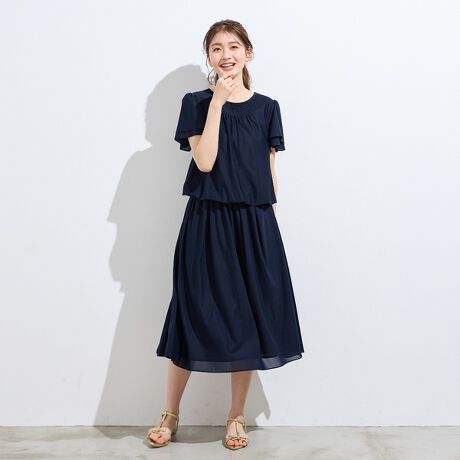 ・同素材を使用したブラウスとセットアップでワンピース風に着るのもおすすめ