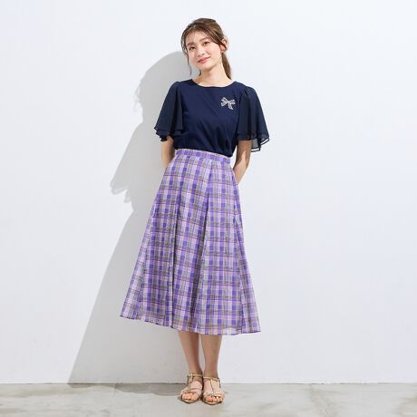 ・透け感のあるシフォンを2枚重ねたフレア袖が、軽やかで華やかなアクセントに