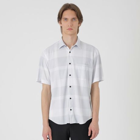【伸縮性に優れたトリコット素材に繊細なプリントを施したクレストブリッジチェックシャツ】