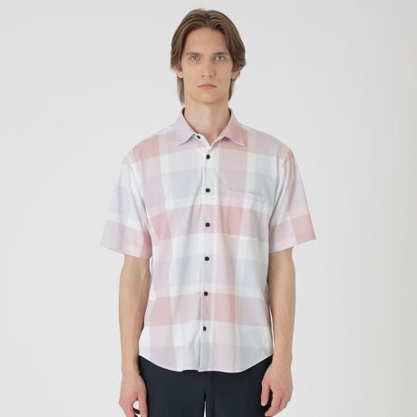 【伸縮性に優れたトリコット素材に繊細なプリントを施したクレストブリッジチェックシャツ】
