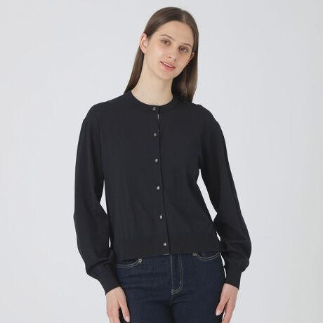 [型番:56N01760__]◆着回し力抜群のベーシックカーディガン【Design】ベーシックで着回しやすいカーディガン。ほどよくゆとりを持たせたシルエットで、スカートにもパンツにも合わせやすく、デイリーコーデに活躍します。ロゴ入りの貝調ボタンが、さりげなく上品な華やかさをプラスします。シンプルながらもディテールにこだわった、長く愛用できる一枚です。※展開店舗については、予告なく変更になる場合がございます。