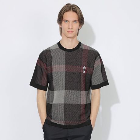 ・クレストブリッジチェックをジャカードでメッシュ調に編み上げたニットTシャツ。編地ならではの立体感と軽さを、Tシャツ感覚で楽しめるデザイン。