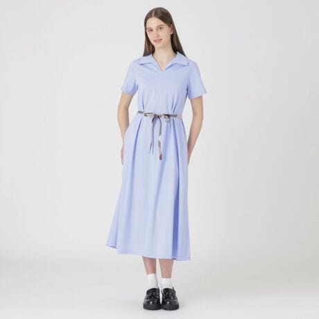 [型番:56J01779__]◆動きやすさと上品さを兼ねたポンチドレス【Design】スキッパーデザインが程よい抜け感を演出するジャージードレス。適度なゆとりを持たせたシルエットは、Aラインに広がる優雅なフォルムでリラックス感も抜群です。デイリー使いはもちろん、きれいめスタイルにもマッチする一枚です。