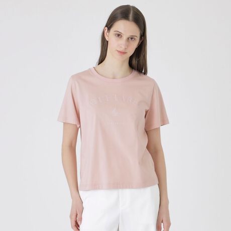 ブランドロゴをアレンジした、上品な印象のグラフィックTシャツ。