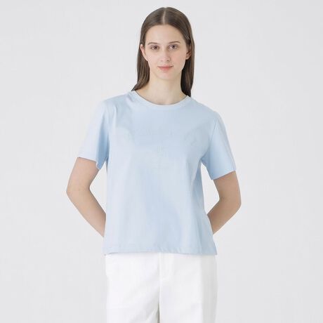 ブランドロゴをアレンジした、上品な印象のグラフィックTシャツ。