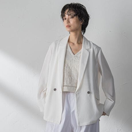 軽く羽織れてきちんと整う、メッシュ素材のダブルブレストジャケット。