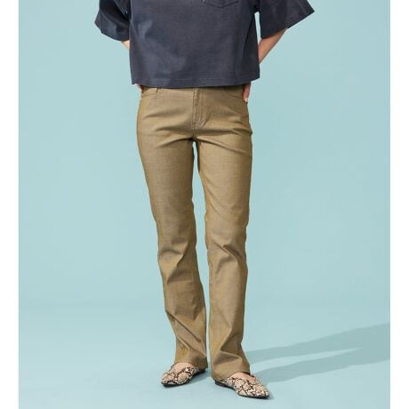 ベーシックな5ポケットデザインは、どんなトップスとも相性が良く、夏の幅広いコーディネートにマッチします。「スキニーほどタイトなのは苦手だが、脚をすっきり見せたい」という方にこそ選んでいただきたい、唯一無二の一本です。上品なブラウスを合わせたきれいめスタイルから、シンプルなTシャツとの大人カジュアルまで、これ一着で夏のスタイリングが劇的にスマートにまとまります。