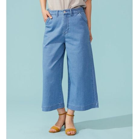 裾に向かって緩やかに広がる、上品なドレープ感が魅力のガウチョシルエットです。絶妙な7分丈が足首の華奢な部分を強調しつつ、気になる太もも回りはしっかりカバー。腰回りはフラットフロントとカーブベルトにより、しゃがんだ際の後ろ姿も美しくフィットします。また、ヨーク幅やポケットの配置をミリ単位で緻密に設計することで、後ろ姿まで自信が持てる小尻効果を叶えました。