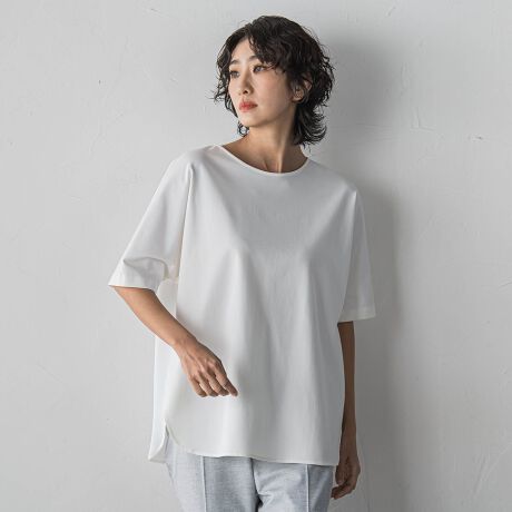 程よい落ち感とソフトな風合い、適度なハリ感があり、透け感も気にせず着用していただけます。