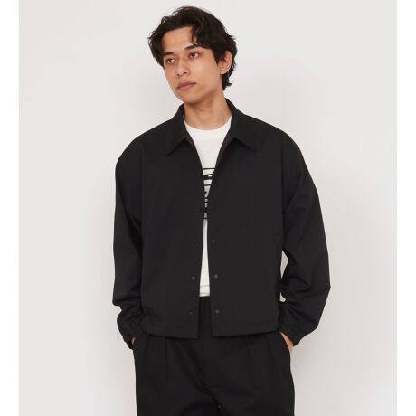 [型番:DO2003-0001]ナチュラルな伸縮性を備えたポリエステルツイル生地。軽量でシワになりにくく、お手入れも簡単なため、日常使いや出張時にも快適に着用できる素材です。ナチュラルストレッチで伸縮性のあるポリ生地で軽くシワになりにくい性能 を兼ね備えた、アクティブなコーチジャケットです。同素材でセットアップスタイルがオススメです。