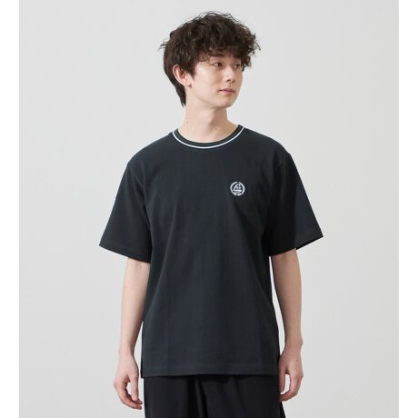 襟元に施されたラインリブが印象的な、スポーティーかつ都会的なデザインのTシャツです。ラインの色と身頃の配色を絶妙に合わせることで、クリーンでまとまりのあるルックスを実現しました。