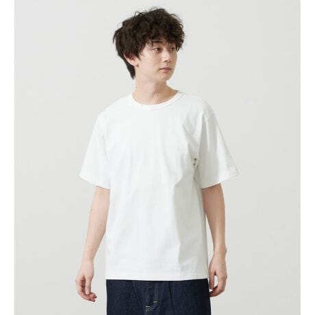 10/-OE天竺(コットン天竺素材)を採用。 オープンエンド糸特有の、ざっくりとしたドライな質感が特徴です。 ヘビーウェイトならではの厚みがあり、一枚で着用しても透けにくいため、大人のカジュアルスタイルに欠かせない頼もしさを備えています。