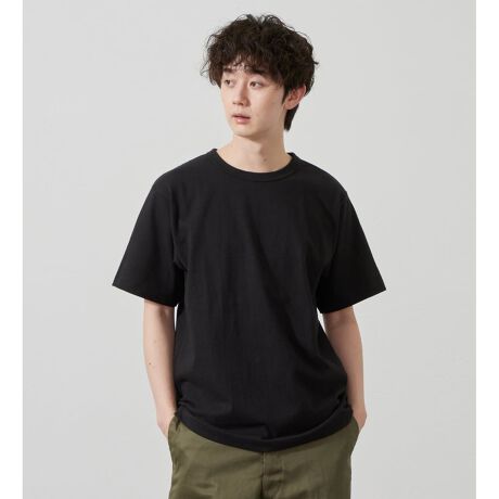 10/-OE天竺(コットン天竺素材)を採用。 オープンエンド糸特有の、ざっくりとしたドライな質感が特徴です。 ヘビーウェイトならではの厚みがあり、一枚で着用しても透けにくいため、大人のカジュアルスタイルに欠かせない頼もしさを備えています。