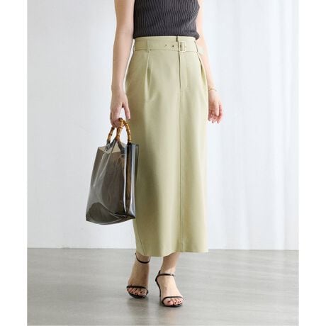 共布ベルト付きで、ウエストまわりをすっきりと見せてくれるタイトスカート。