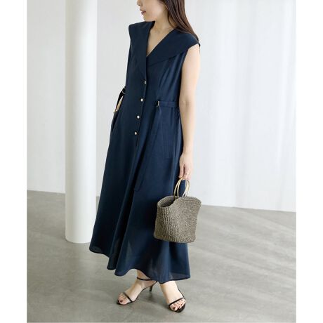 セーラーカラーが顔まわりをすっきりと見せてくれる、大人の上品ワンピース。