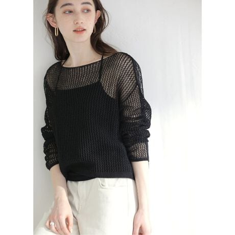 程よい透け感が女性らしい、ペーパーヤーンのメッシュプルオーバー。