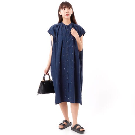 フレンチスリーブギャザー入りワンピース