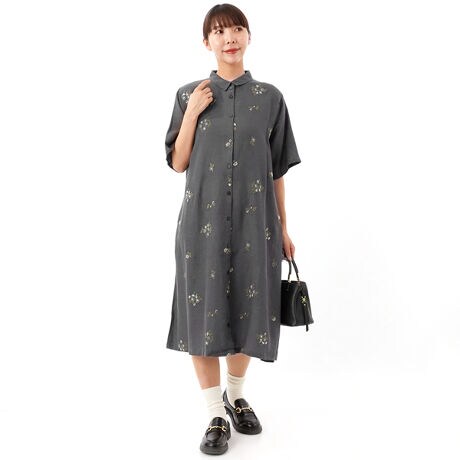 5分袖花刺繍入りワンピース